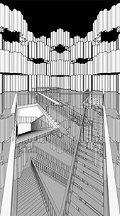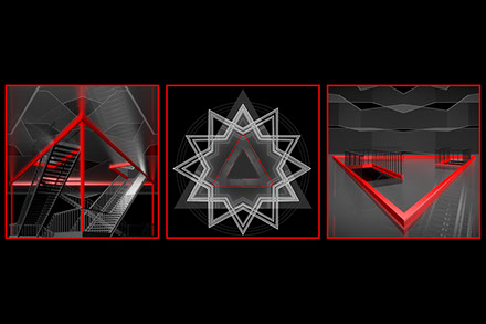 Le film d’animation généré par ordinateur détaille le fonctionnement du dispositif. Des balises permettent de détecter le nombre de spectateurs situés autour de la structure. Si plusieurs dizaines de visiteurs montent au sommet de la structure, ils déclenchent le repli sur eux-mêmes des panneaux. Chaque itération du flocon de Koch est réduite jusqu'au triangle équilatéral à partir duquel il est construit. À cet instant, les quatre triangles équilatéraux forment par leur décalage de 30° le plan qu’avait conçu Vitruve pour construire le modèle de l’amphithéâtre romain. Il me permet de souligner le rôle que peut revêtir l'installation en tant qu'observatoire astronomique (le plan de Vitruve devant permettre d’aisément rapporter les actions se déroulant sur scène à la voûte céleste et prêter ainsi au jeu des acteurs des significations cosmogoniques). Le réemploi de cette structure dans ce contexte n’a ici qu’une fonction pédagogique : il est possible de former des structures complexes par l’association d’éléments simples.