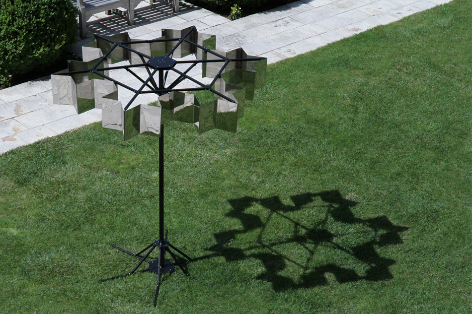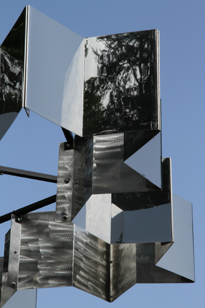 À hauteur des yeux, la couronne d'inox semble être constituée de panneaux disposés aléatoirement. L'aspect réfléchissant de l'inox poli miroir, en rendant notre appréciation de sa topologie plus difficile, renforce cette impression. Cependant, lorsqu'elle est éclairée par une source de lumière ponctuelle, l'ombre portée de la couronne révèle qu'elle est en réalité construite de manière très régulière : sa structure est même récursive.