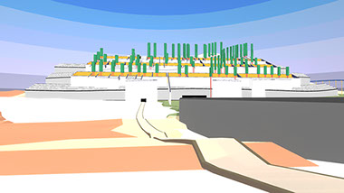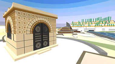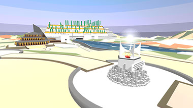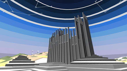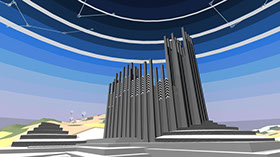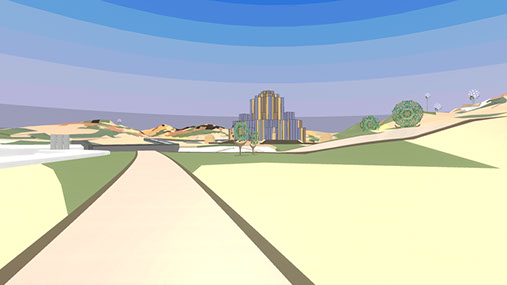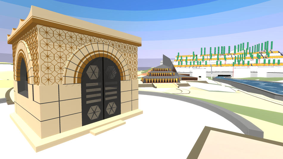 Le second décor est utilisé pour la fin de la pièce, qui met en scène le rite funéraire que le groupe d’internautes souhaite exécuter pour leur ami disparu, ami qu’ils n’ont chacun connu qu’à travers le monde persistant auquel ils ont pour habitude de se connecter. Afin de faire écho à la virtualité de leurs relations, elles-mêmes conduites au sein d’une œuvre dramatique, le paysage dans lequel ils évoluent pour cette scène les place au milieu de théâtres inachevés, de projets architecturaux grandioses mais qui n’eurent d’existence qu’à l’état d’esquisses ou de maquettes. On retrouve à titre d’exemples : la Haus des Himmels de Bruno Taut, la Konzertsaal et le Volkstheater de Hans Luckhardt ou enfin Bloch City de Peter Cook (ex-Archigram).