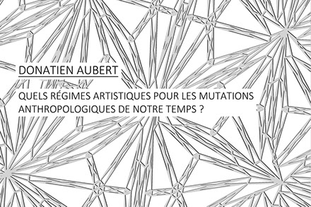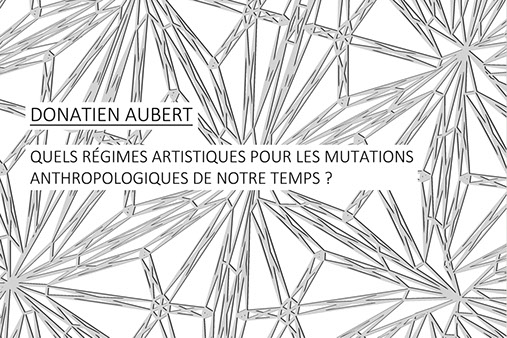 Quels régimes artistiques pour les mutations anthropologiques de notre temps ? est le mémoire écrit par Donatien Aubert pour son Diplôme National Supérieur d’Expression Plastique. Il est illustré d’une centaine d’images et compte 248 pages. Il a été dirigé par Corinne Le Néün.