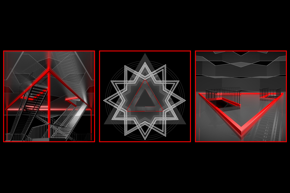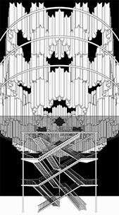 L'installation no2 est constituée d'une plateforme accessible par trois escaliers en colimaçon, pris dans une cage en forme de prisme. Au sommet de la plateforme se trouvent quatre étages constitués de panneaux pliants. Ils adoptent la topologie du flocon de Helge von Koch, projeté à la verticale : une fractale inventée par le scientifique allemand en 1906. Pour construire le flocon, il faut tracer un triangle équilatéral, diviser ses arêtes par trois, puis faire naître des segments médians de nouveaux triangles équilatéraux. Enfin enlever les arêtes intérieures. Chaque étage est décalé de 30° par rapport à celui sur lequel il est dressé.
