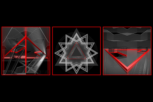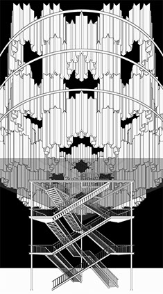 Le film d’animation généré par ordinateur détaille le fonctionnement du dispositif. Des balises permettent de détecter le nombre de spectateurs situés autour de la structure. Si plusieurs dizaines de visiteurs montent au sommet de la structure, ils déclenchent le repli sur eux-mêmes des panneaux. Chaque itération du flocon de Koch est réduite jusqu'au triangle équilatéral à partir duquel il est construit. À cet instant, les quatre triangles équilatéraux forment par leur décalage de 30° le plan qu’avait conçu Vitruve pour construire le modèle de l’amphithéâtre romain. Il me permet de souligner le rôle que peut revêtir l'installation en tant qu'observatoire astronomique (le plan de Vitruve devant permettre d’aisément rapporter les actions se déroulant sur scène à la voûte céleste et prêter ainsi au jeu des acteurs des significations cosmogoniques). Le réemploi de cette structure dans ce contexte n’a ici qu’une fonction pédagogique : il est possible de former des structures complexes par l’association d’éléments simples.
