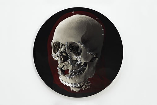 Dans l'imaginaire contemporain, le transhumanisme fait valoir que nos organes seraient bientôt aisément remplaçables. Ces images montrent que ces discours sont fantasmatiques : dans le cas de la chirurgie maxillofaciale, les interventions actuelles restent profondément invasives et visent à préserver au maximum, dès que cette option est possible, la structure originale du visage du patient, comme le révèle ici le placement des plaques d'ostéosynthèse.