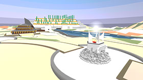 Le second décor est utilisé pour la fin de la pièce, qui met en scène le rite funéraire que le groupe d’internautes souhaite exécuter pour leur ami disparu, ami qu’ils n’ont chacun connu qu’à travers le monde persistant auquel ils ont pour habitude de se connecter. Afin de faire écho à la virtualité de leurs relations, elles-mêmes conduites au sein d’une œuvre dramatique, le paysage dans lequel ils évoluent pour cette scène les place au milieu de théâtres inachevés, de projets architecturaux grandioses mais qui n’eurent d’existence qu’à l’état d’esquisses ou de maquettes. On retrouve à titre d’exemples : la Haus des Himmels de Bruno Taut, la Konzertsaal et le Volkstheater de Hans Luckhardt ou enfin Bloch City de Peter Cook (ex-Archigram).
