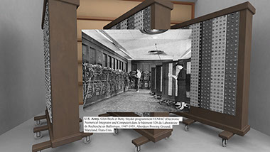 Vue sur la quatrième salle, intitulée « Les premiers développements de l'infographie ».