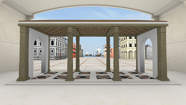Différents objets sont disposés dans les salles, édifiées selon des codes architecturaux propres aux époques dont proviennent les artefacts qu’elles renferment. Quand l’utilisateur les approche, il déclenche l’apparition automatique d’images d’archives légendées, leur correspondant. La décompression de la surcouche informationnelle (le surgissement des images d’archives) rappelle la scansion des imagines agentes, compulsées par les praticiens de la mémoire artificielle. Ce dispositif est l’occasion de souligner, en faisant remonter la transcription plastique des arts de la mémoire aux débuts des représentations en perspective, qu’ils garantirent en Europe l’avènement d’un nouveau régime scopique : la visualisation, qui repose sur la représentation d’un double, d’un fantôme isomorphique intérieur, imaginaire, le régime scopique privilégié de la modernité.