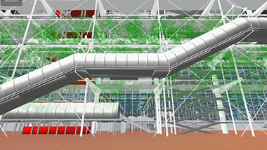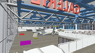 Chaque étage, soutenu par des mégapoutres de cinquante mètres de portée, utilisées dans tout l’édifice pour assurer la polyvalence de ses espaces d’exposition, devait rester totalement ouvert : les œuvres exposées devaient pouvoir être contemplées sans que la vue des visiteurs ne soit arrêtée par un mur, et ainsi se confondre avec l’horizon parisien, que les boyaux de verre du musée laissaient parfaitement visible. Le musée permettait ainsi une inscription des œuvres dans le paysage politique défini par le centre-ville de Paris. Ce choix architectural devait aussi permettre de faire dialoguer ensemble les œuvres sans qu’elles soient séparées par des cimaises contraignant leur interprétation. La performance Cocktail, plutôt que d’abattre les murs intérieurs du centre d’art, rend au projet architectural sa radicalité d’origine en donnant aux œuvres d’être mêlées les unes aux autres une nouvelle fois (à travers une fonte impromptue !).