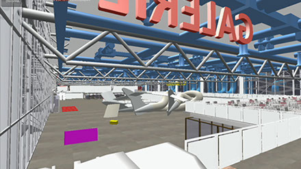 La performance se déroule comme si les joueurs s’appliquaient à déjouer les pièges d’un Survival Horror (un genre de jeu vidéo demandant des interactants qu’ils s’échappent d’un environnement conçu pour son hostilité). Ils sont contraints de fuir d’un étage au suivant alors que le musée est lentement inondé par ses collections. Convoquer l’imaginaire de la catastrophe a permis aux équipes de l’ENSAPC et de Paris VIII de réinvestir narrativement les motivations idéologiques et architecturales qui présidèrent à la conception du musée par le Britannique Richard Rogers et l’Italien Renzo Piano. Le Centre Pompidou (1977) a été pensé dans le prolongement des expérimentations architecturales bioclimatiques (comme les œuvres de Buckminster Fuller et du mouvement Dymaxion ou encore les projets de Cedric Price et d’Archigram). En resituant au sein du musée une catastrophe d’ampleur, la performance fait écho à l’imaginaire science-fictionnel qui avait motivé la construction du musée et qui le rendit populaire dès son inauguration.