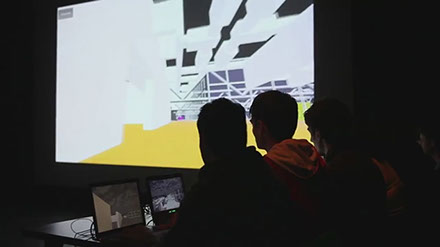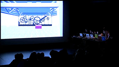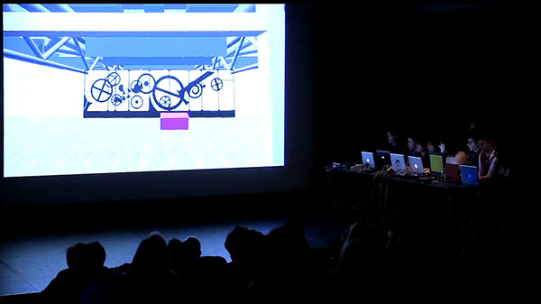 Cette performance a été réalisée dans le cadre du Festival Hors Pistes, organisé au Centre Georges Pompidou chaque année, intitulée “Scalability” pour son édition de 2013. Cocktail est montré grâce à un dispositif scénique pour huit personnes (cinq joueurs, un monteur image et deux monteurs son) faisant face à une projection sur grand écran. Les joueurs déambulent dans un environnement interactif tridimensionnel généré par ordinateur. La simulation incorpore une représentation du Centre Pompidou. Le monteur sélectionne les vues subjectives des joueurs, qui sont alors vidéo-projetées. Ce travail d’éditorialisation participe de la création d’un film, monté en direct. La déambulation des joueurs dans les espaces d’exposition, déclenche des événements imprévus qui perturbent l’architecture du musée virtuel : les œuvres fondent et inondent les salles, submergeant bientôt tout le musée.