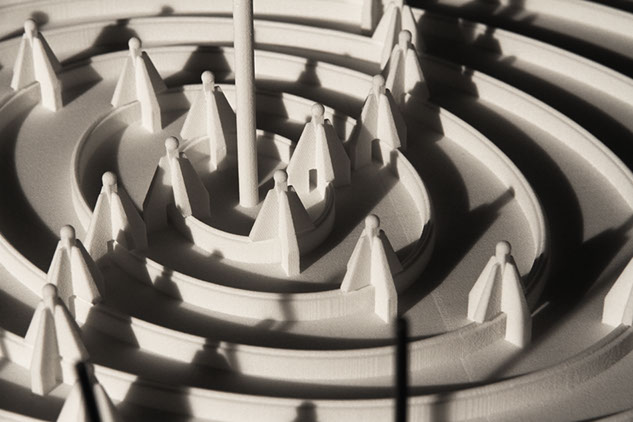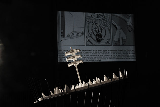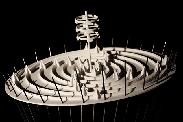 Il s'agit d'une maquette reprenant les principaux éléments formels de la première installation Empirisme Direct : les arceaux au sol représentent chacun l'orbite d'un système (étoile, planètes et satellites) autour de son centre galactique. Le mat au centre de la maquette et les plots correspondent à des éléments fonctionnels de l'installation dans l’hypothèse de sa construction.