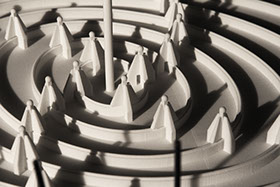 Maquette imprimée en 3D par frittage de poudre, polyamide blanc, tiges d’acier