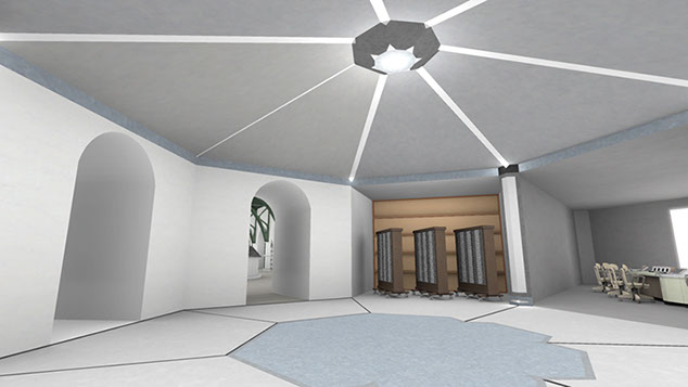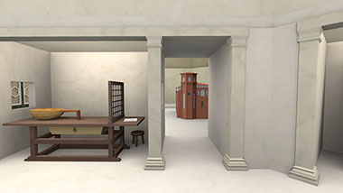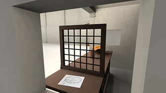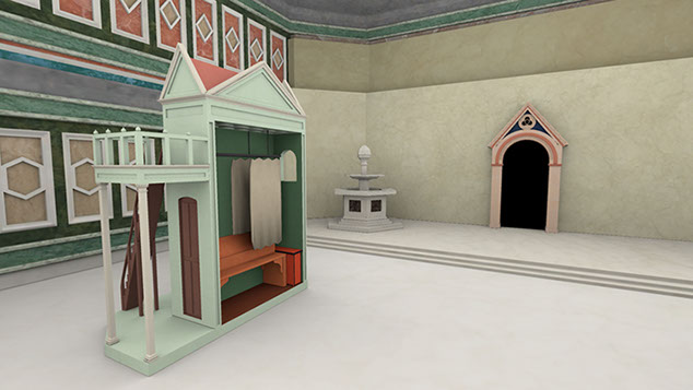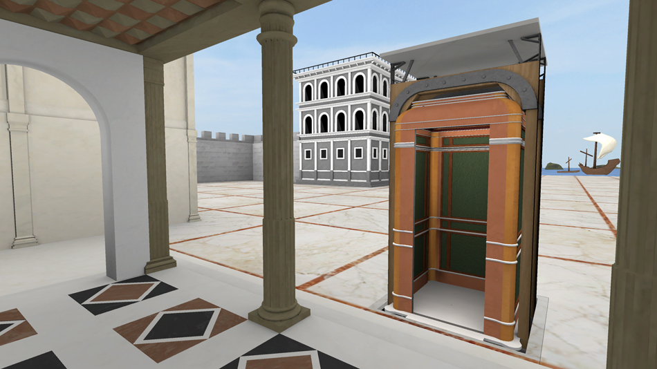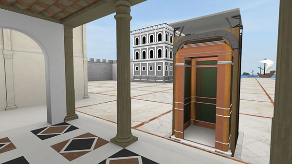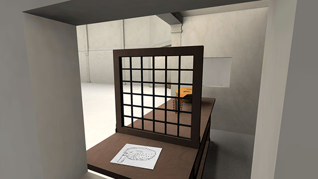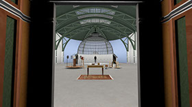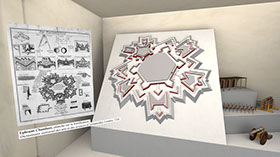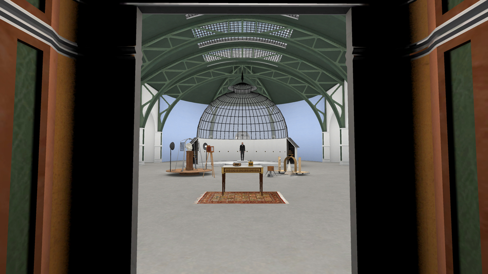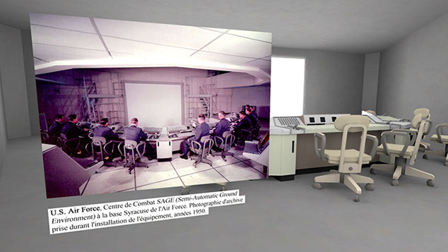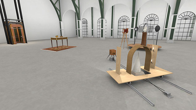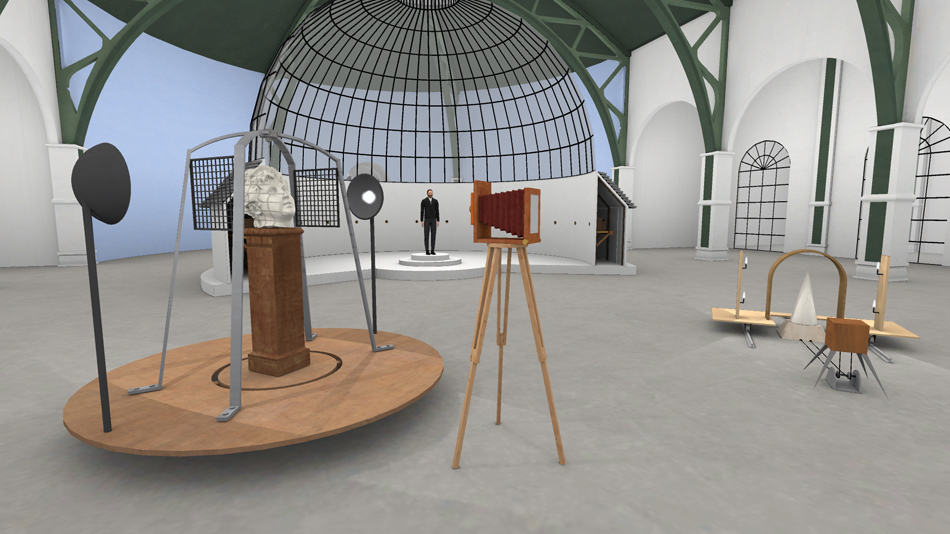 Différents objets sont disposés dans les salles, édifiées selon des codes architecturaux propres aux époques dont proviennent les artefacts qu’elles renferment. Quand l’utilisateur les approche, il déclenche l’apparition automatique d’images d’archives légendées, leur correspondant. La décompression de la surcouche informationnelle (le surgissement des images d’archives) rappelle la scansion des imagines agentes, compulsées par les praticiens de la mémoire artificielle. Ce dispositif est l’occasion de souligner, en faisant remonter la transcription plastique des arts de la mémoire aux débuts des représentations en perspective, qu’ils garantirent en Europe l’avènement d’un nouveau régime scopique : la visualisation, qui repose sur la représentation d’un double, d’un fantôme isomorphique intérieur, imaginaire, le régime scopique privilégié de la modernité.