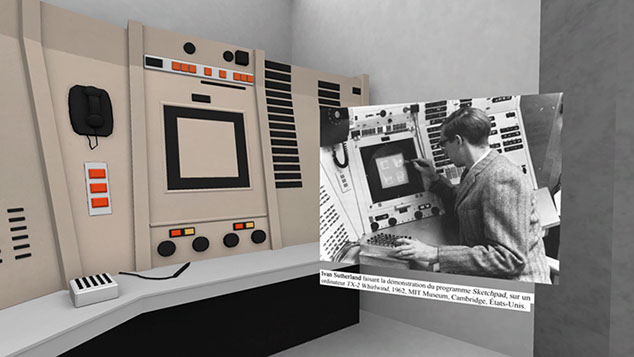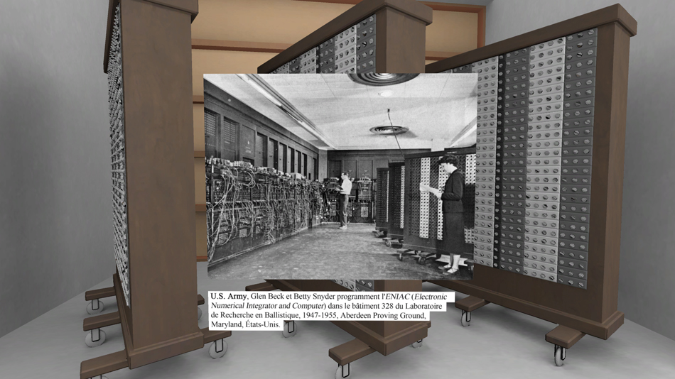 Vue sur la quatrième salle, intitulée « Les premiers développements de l'infographie ».