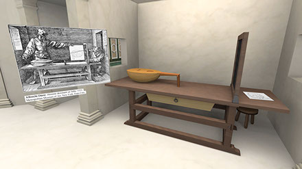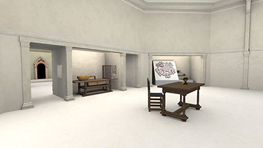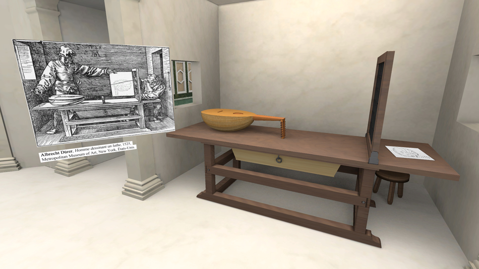 Numer-Locus est un programme 3D interactif. Il permet d’explorer cinq chambres organisées selon les règles des arts de la mémoire et porte sur l’histoire des techniques de représentation tridimensionnelle. Chaque salle renvoie à un moment clé de leur développement.