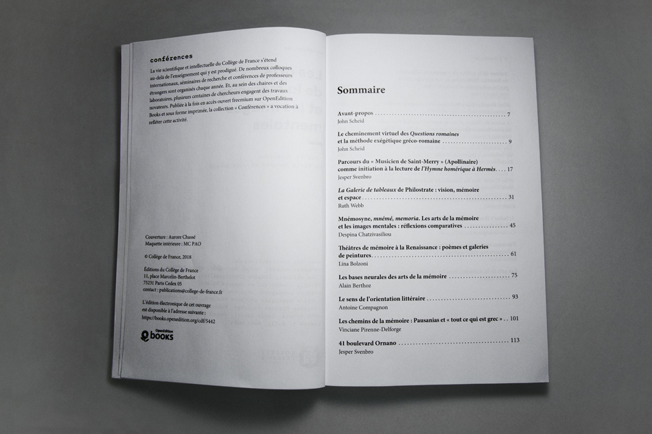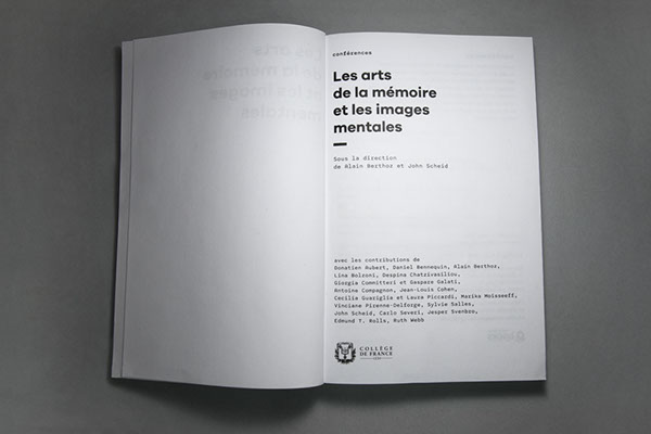 En 2018 paraissait Les arts de la mémoire et les images mentales. Cet ouvrage collectif, publié aux Éditions du Collège de France et placé sous la direction de John Scheid et Alain Berthoz, aborde le thème des arts de la mémoire en convoquant des spécialistes de disciplines provenant aussi bien des sciences humaines que des sciences expérimentales.