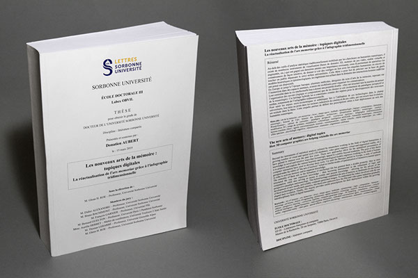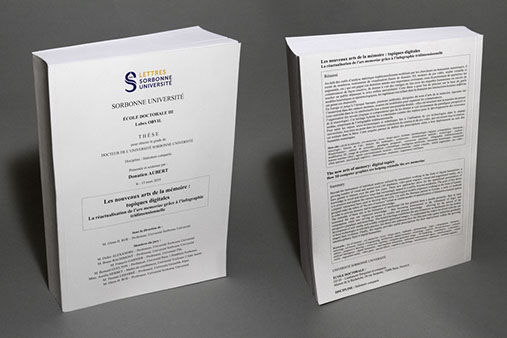 Ce travail de recherche s’inscrit dans le domaine transdisciplinaire des humanités numériques. Il s’articule autour de la réactualisation dans le domaine des interactions homme-machine des techniques antiques de « mémoire artificielle », désignées à la Renaissance du nom d’arts de la mémoire. Initié en 2014, ce travail de recherche s’établit à la croisée de la littérature, de l’histoire de l’art et des techniques, de l’épistémologie et des sciences de l’information et de la communication. Donatien Aubert s’attache à montrer dans cette thèse les liens historiques que partagent dans leur déploiement en Europe, les arts, la logique et la computation. Il détermine également comment ces affinités ont été renouvelées à l’époque contemporaine et détaille leurs rapports mutuels à l’humanisme philosophique.